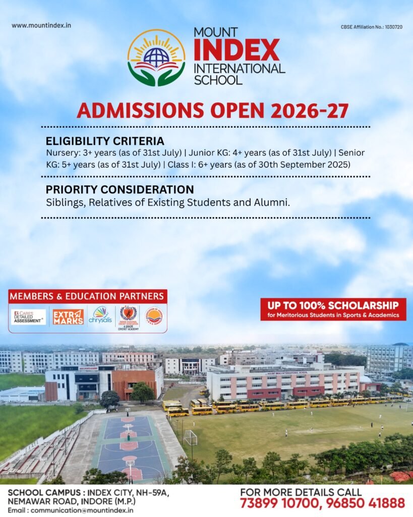 Mount Index International School has been conceived as an answer to the ever growing need for world class schools in the city with the purpose to nurture the unique potential of the students entrusted in our care. It aims to offer a liberal and enlightened environment in education to keep pace with the dynamic trends. The unquenchable and insatiable thirst for excellence is the eternal spirit which the students are imbibed with to achieve the aim set by its ideology. The school has been founded under aegis of Central India’s Largest Medical Education Group “The Index Group of Institutions”.