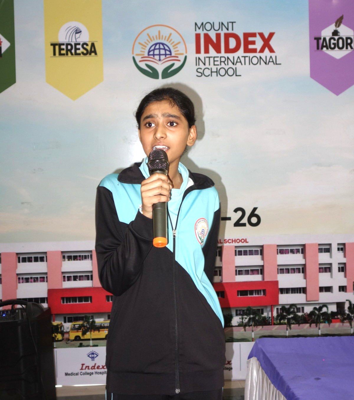On 10th October 2025, the Senior Wing of Mount Index International School hosted a mesmerizing Kavi Sammelan for Classes 9 & 10. Students showcased their talents through Veer Ras, Raudra Ras, and Vātsalya Ras, leaving the audience spellbound with their creativity, expressions, and confidence.