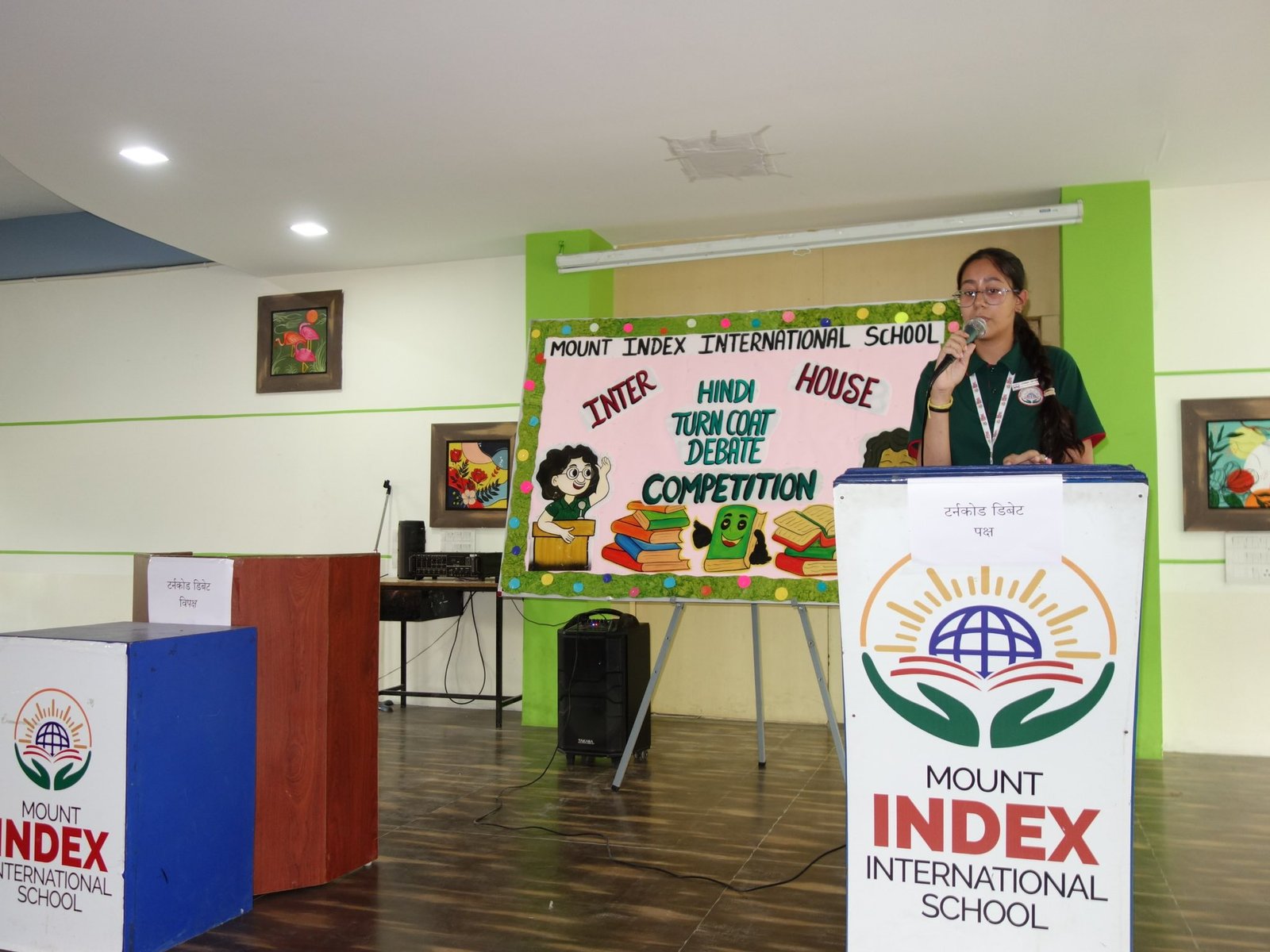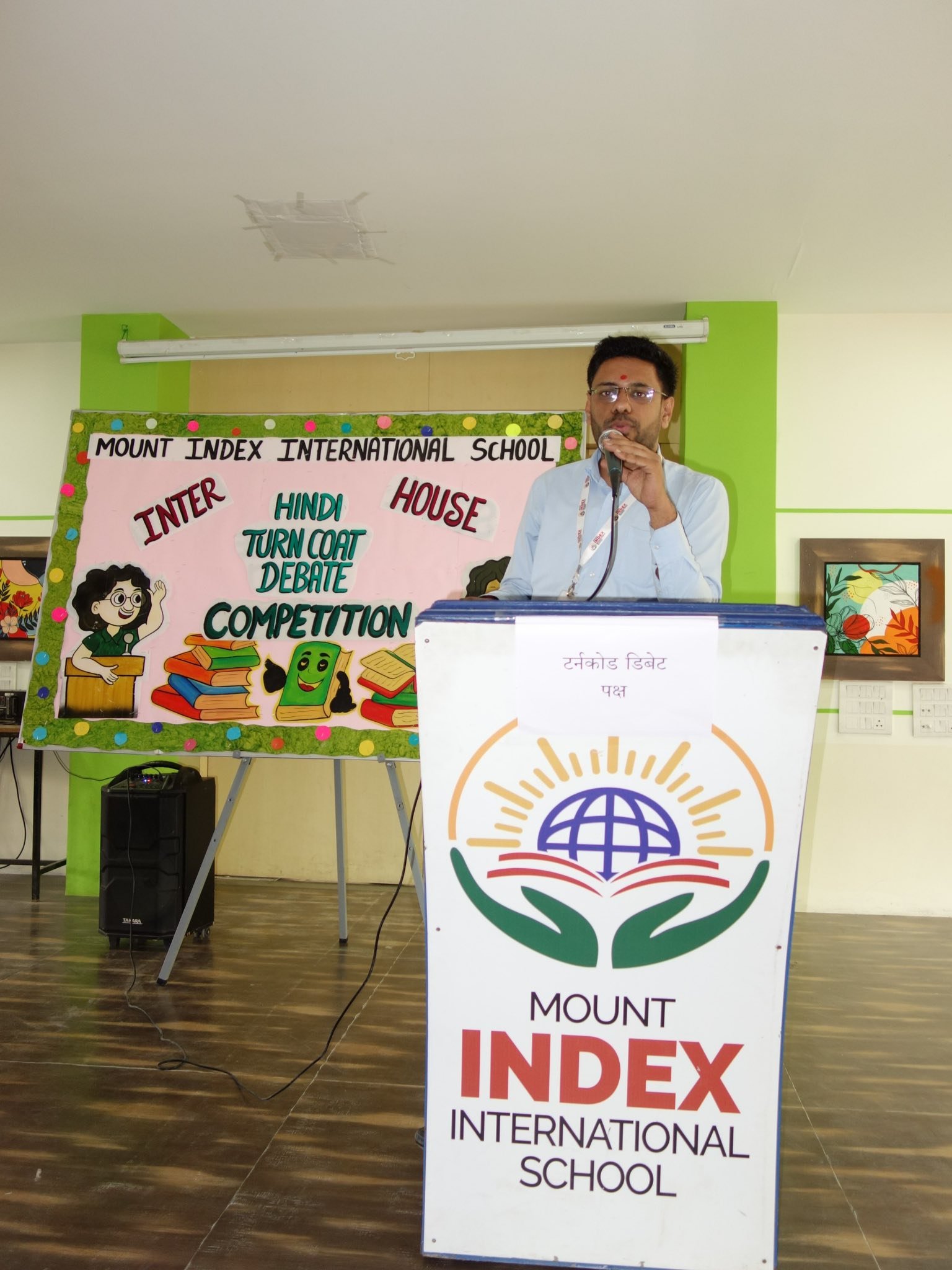 The Senior Wing of Mount Index International School, Indore, hosted a Hindi Turncoat Debate Competition for Classes 11 & 12, showcasing brilliance in expression, confidence, and analytical thinking. Students eloquently argued both for and against thought-provoking topics, reflecting their sharp intellect and command over the Hindi language.